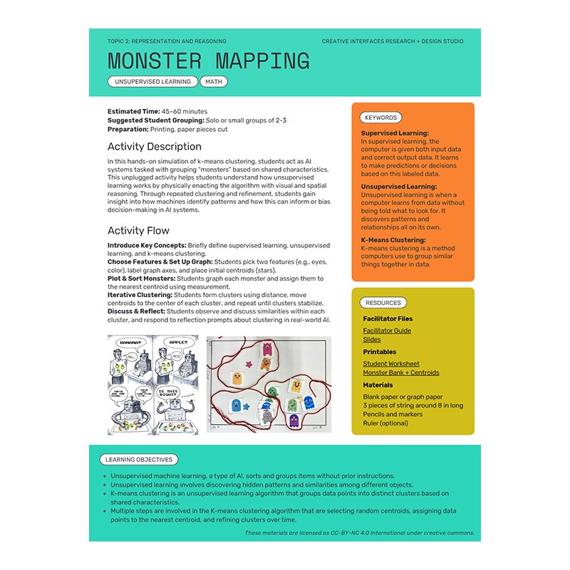 In this activity patrons act as AI systems, grouping "monsters" based on shared characteristics. This activity does not require a computer.
